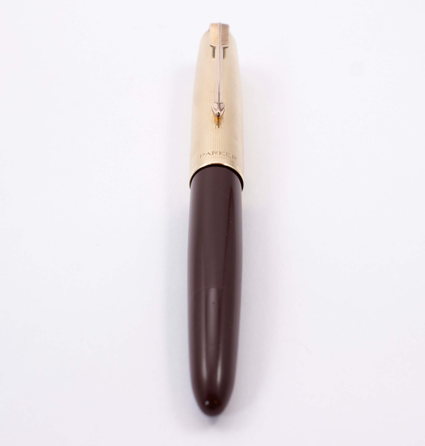 Parker 51 Demi Vacumatic, Cordovan Brown, Gold Filled Lined Cap, Fine 14K gold nib