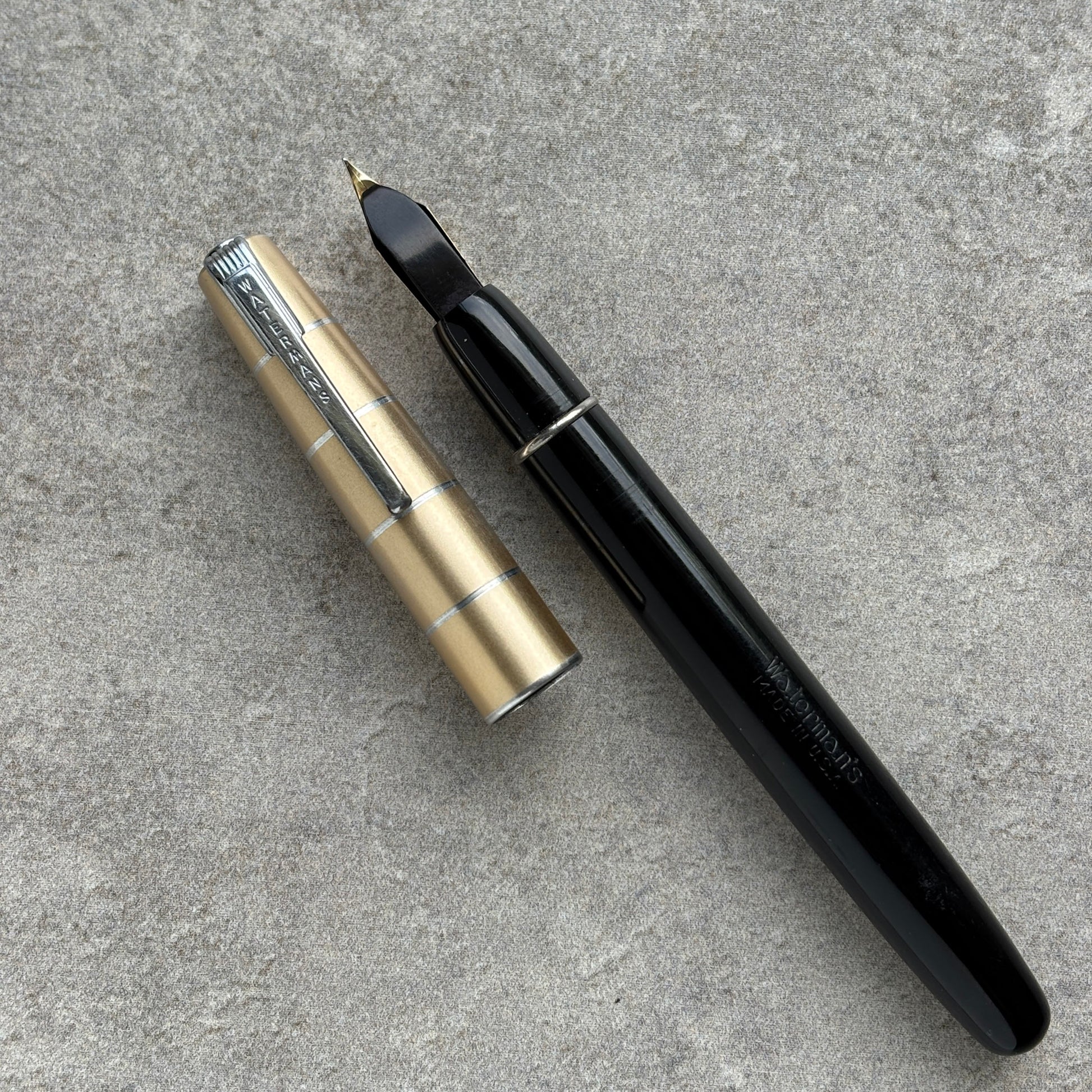 This Waterman Crusader is in very good condition; it has no chips, cracks, or dents. There is a tiny bit of gold loss on the cap. It is a nice, responsive semi-flexible nob, perfect for everyday writing.