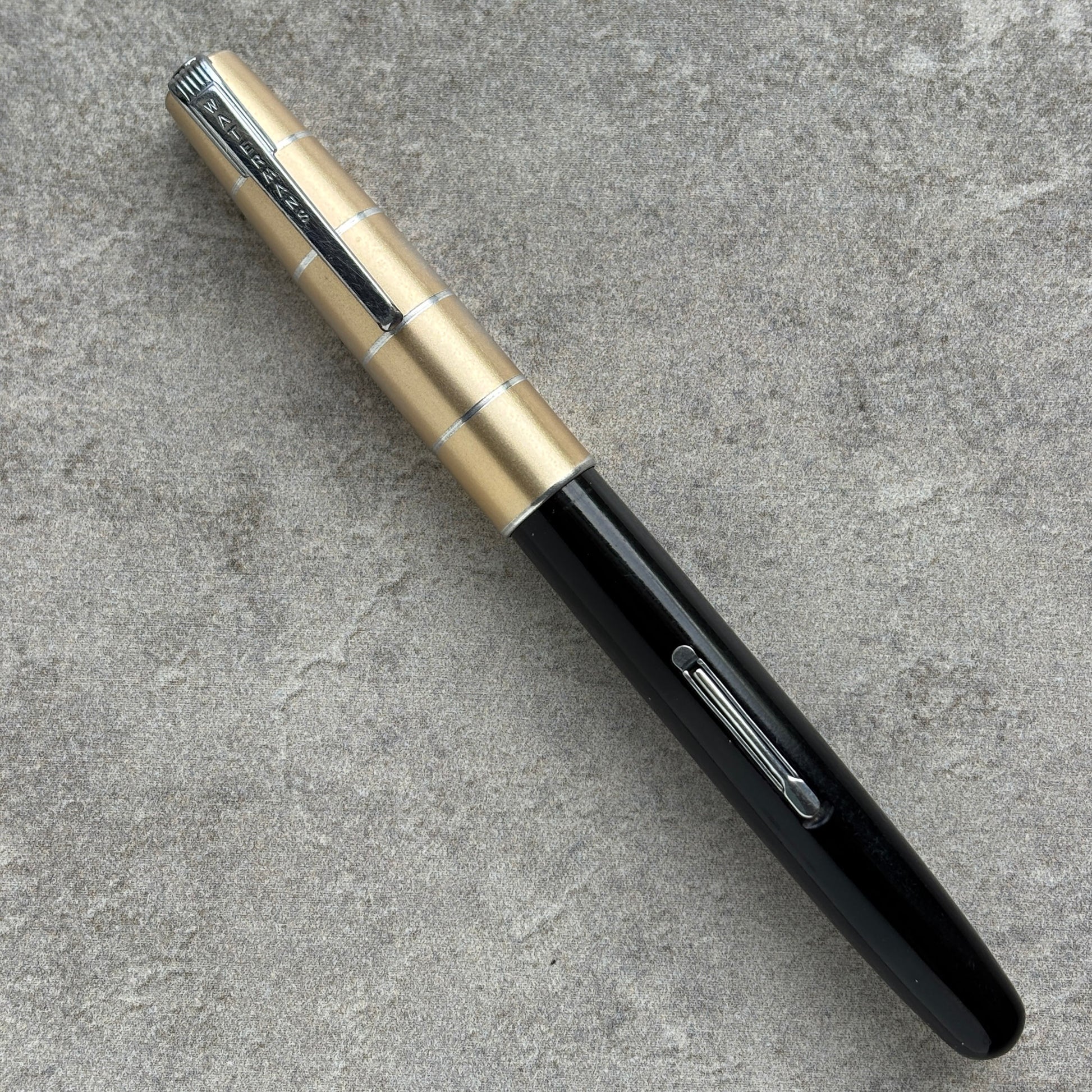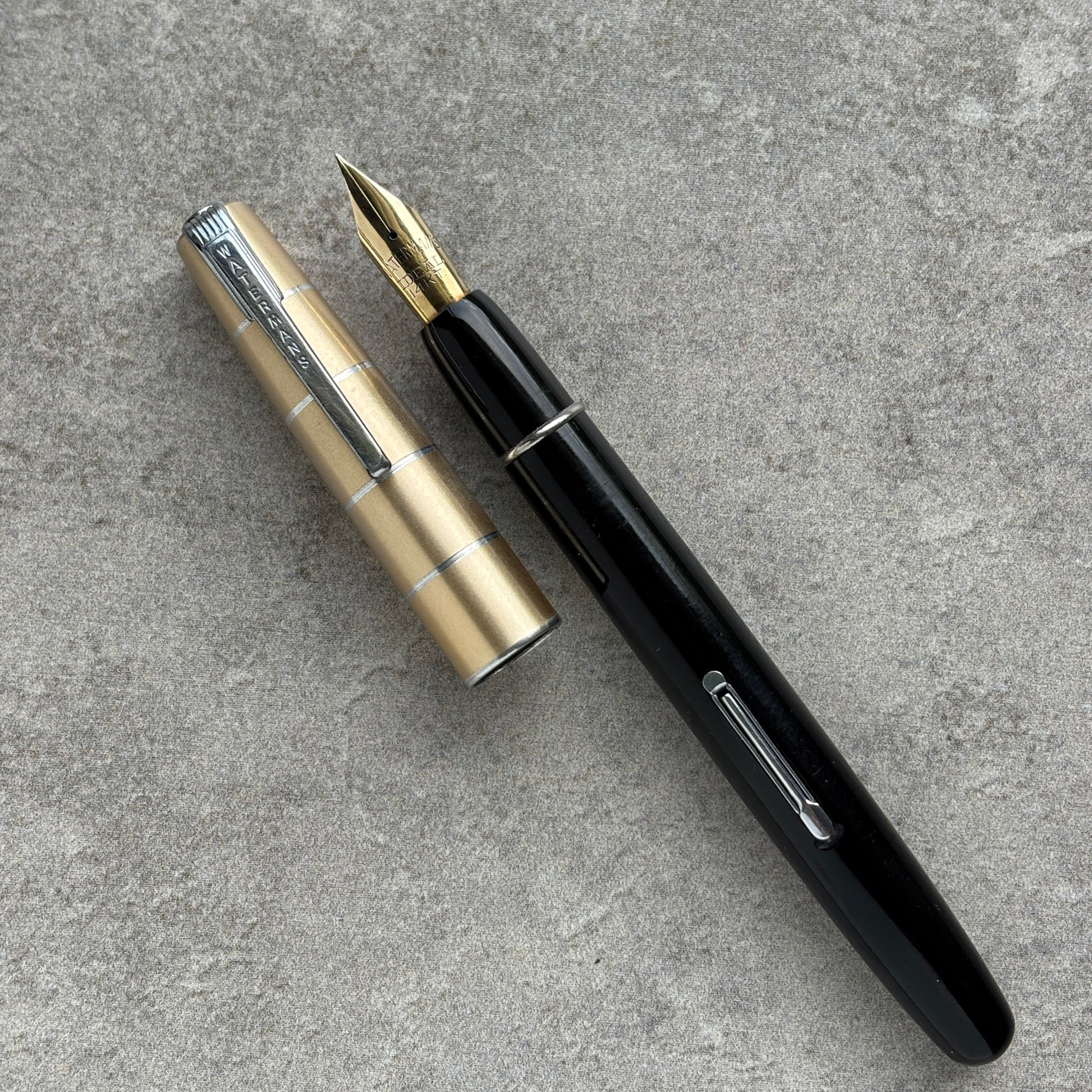 Color/Pattern: Black barrel with gold color; steel cap and chrome trim.